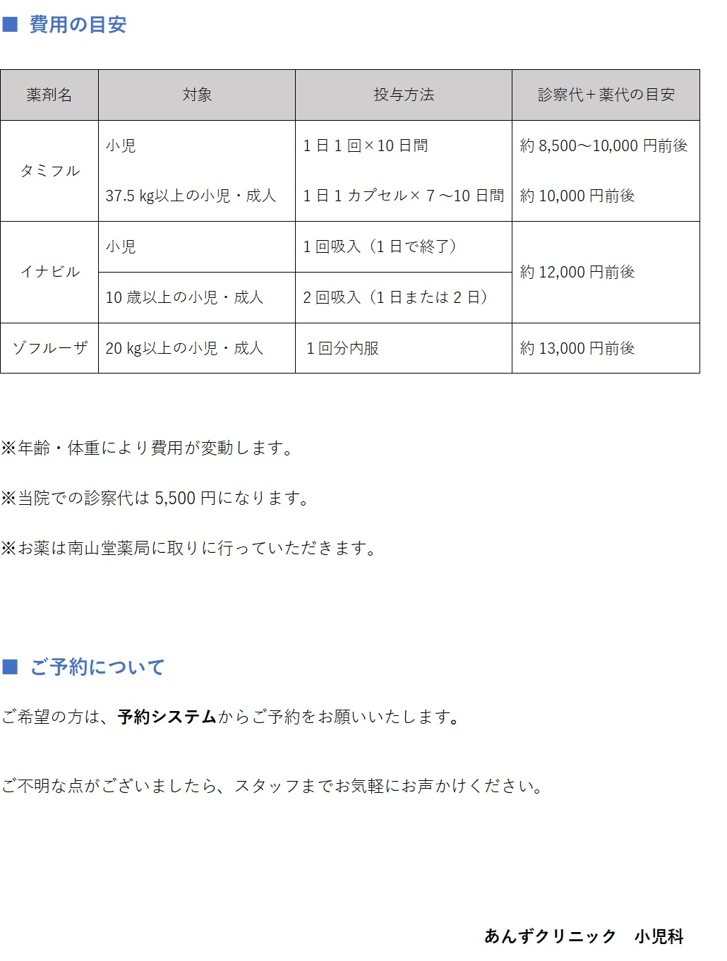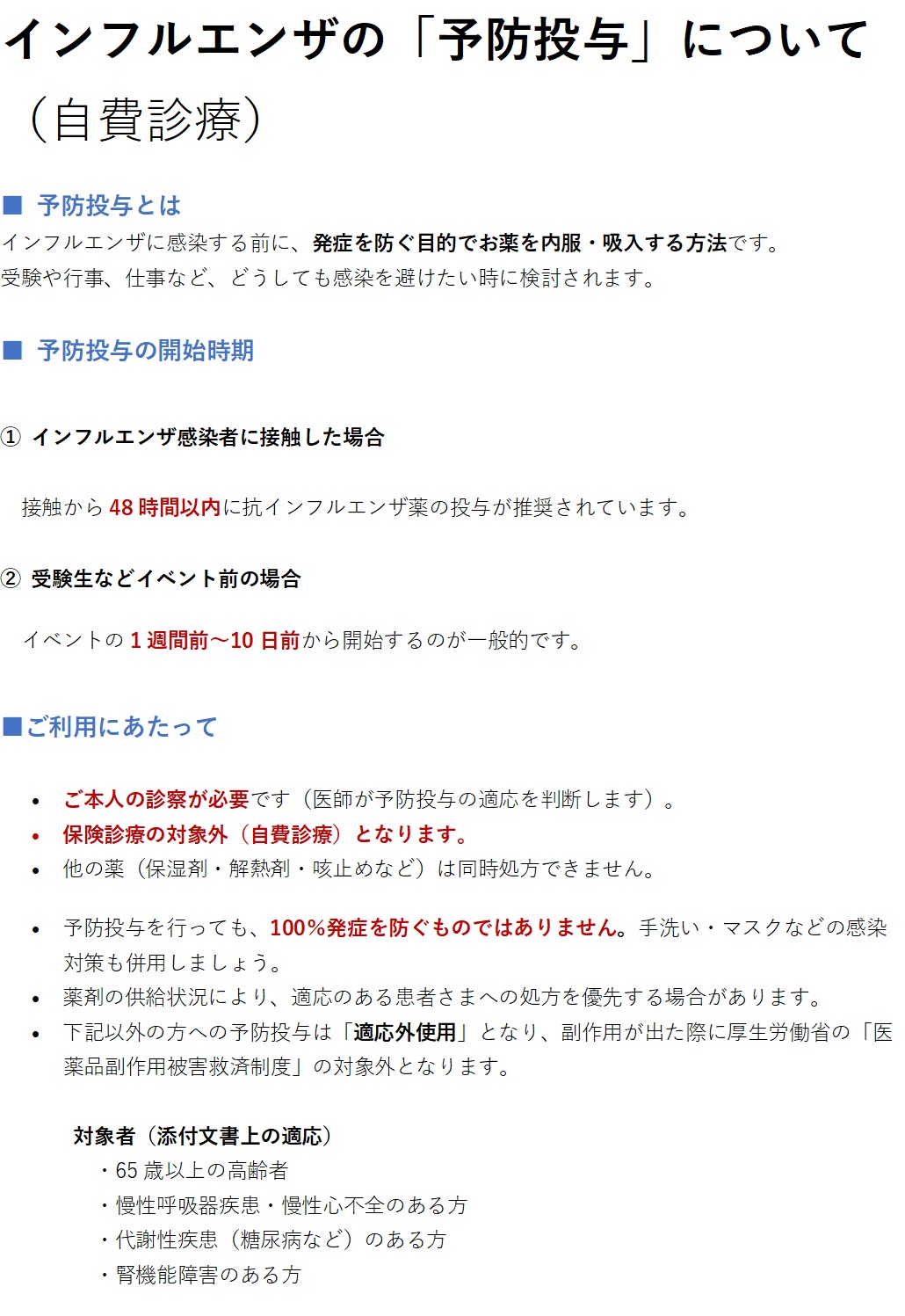 小児科 インフルエンザ予防薬が処方可能です(自費診療)