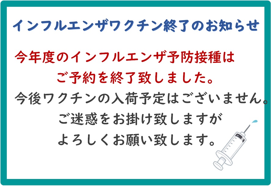 内科 インフルエンザ予防接種終了のお知らせ