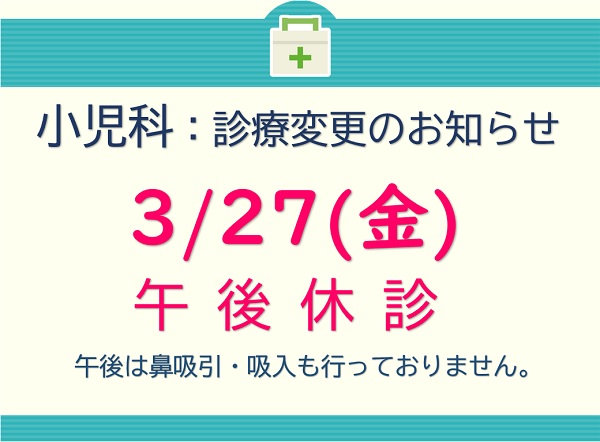 小児科 3/27(金)午後休診のお知らせ