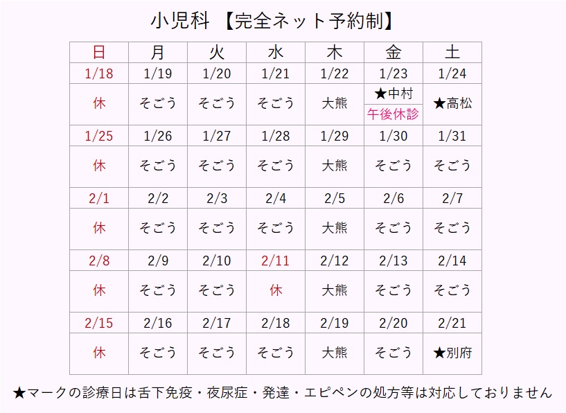 | 2026.01.10 | 1/23(金) 小児科:午後休診のお知らせ |