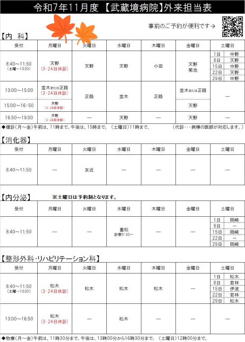 印刷用は、こちらをクリックしてくださいhttps://tenseikai.jp/sakai-hosp/wp24/wp-content/uploads/2025/10/gairai11.pdf。